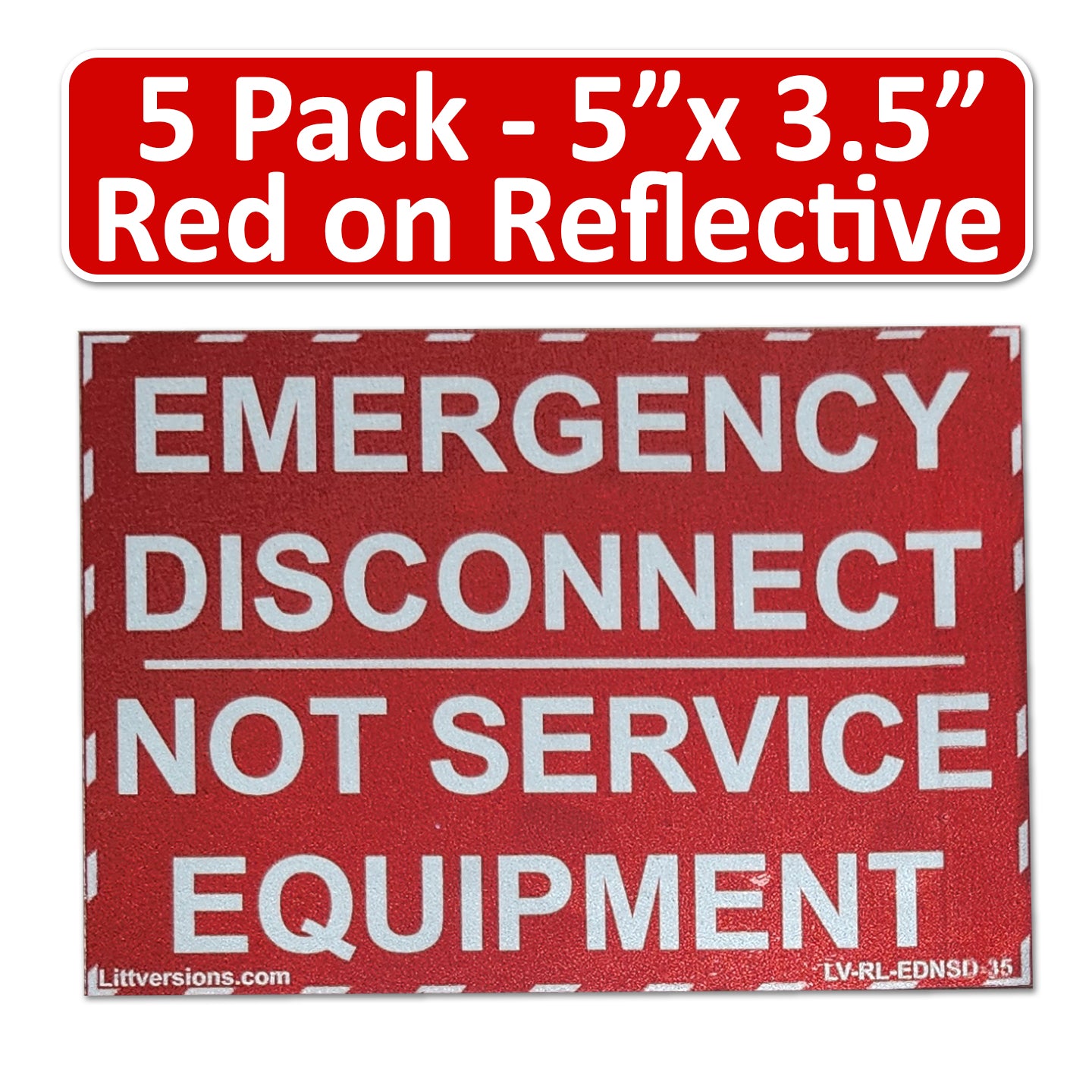 5 Pack 5"x 3.5" Red Reflective Laminated NEC Compliant Emergency Disconnect Service Labels Sign Notice Danger Sticker Panel Heavy Duty Pressure Sensitive Ultra Durable Electrical Lock Out