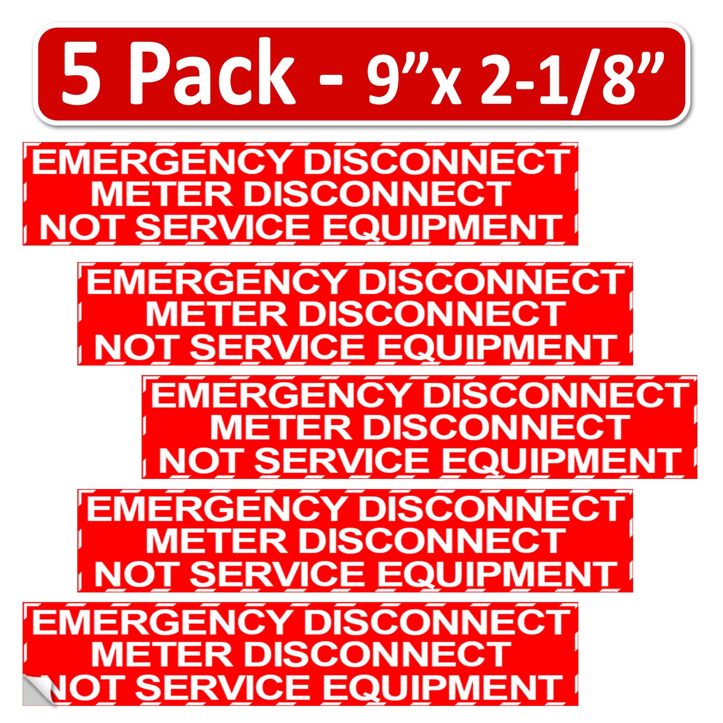 5 Pack 9" x 1-3/4" Reflective NEC Compliant Emergency Disconnect Service Outdoor Laminated Labels Decal Sign Notice Sticker Danger Vinyl Waterproof Electrical Panel