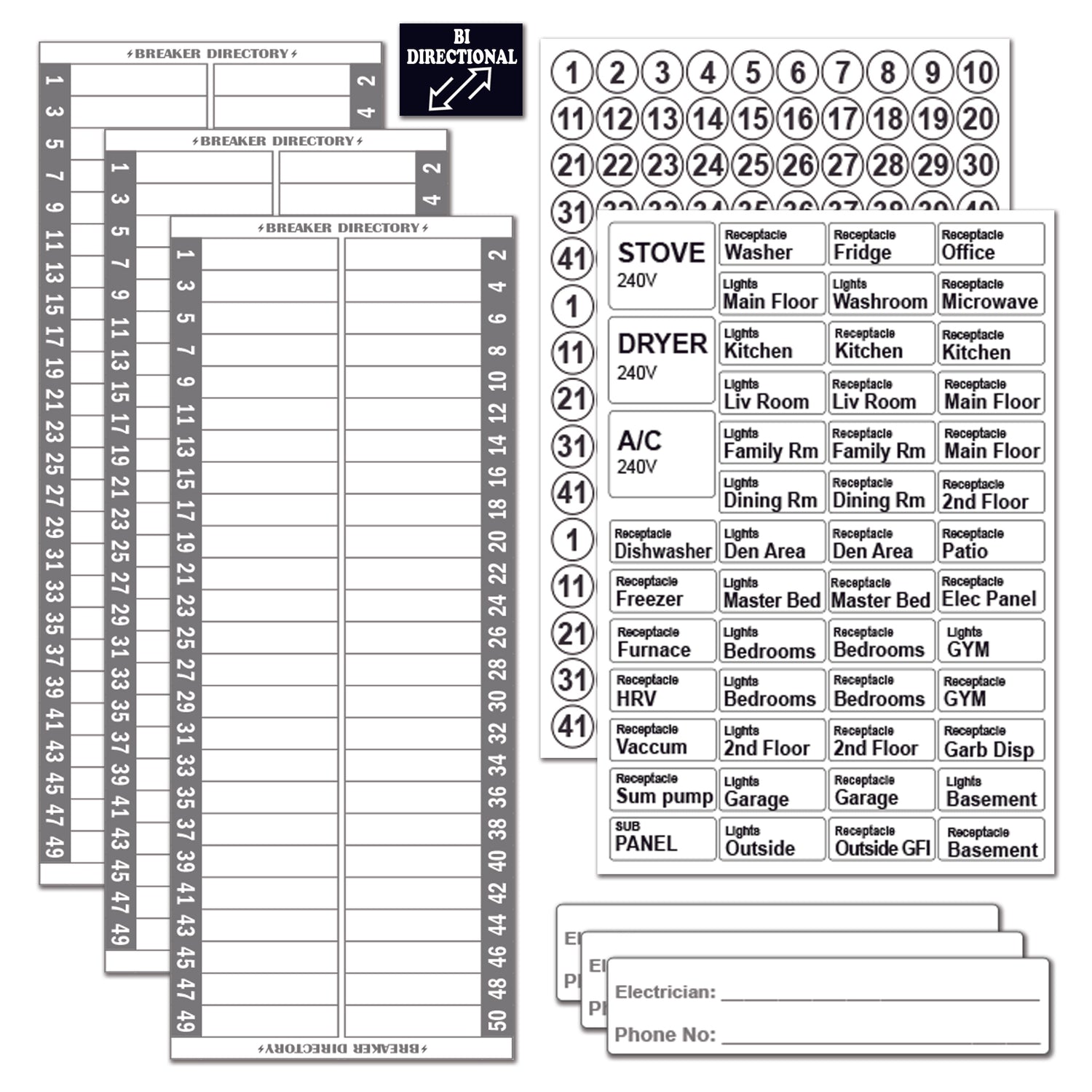 Littversions 76 Pcs 480/240/208/120V Electrical Labels Stickers Decals Markers Sign for Main Disconnect Splitter Transformer Panel Circuit Breaker Loadcenter Lighting Motor Contactor Box (Custom -76 Pcs)