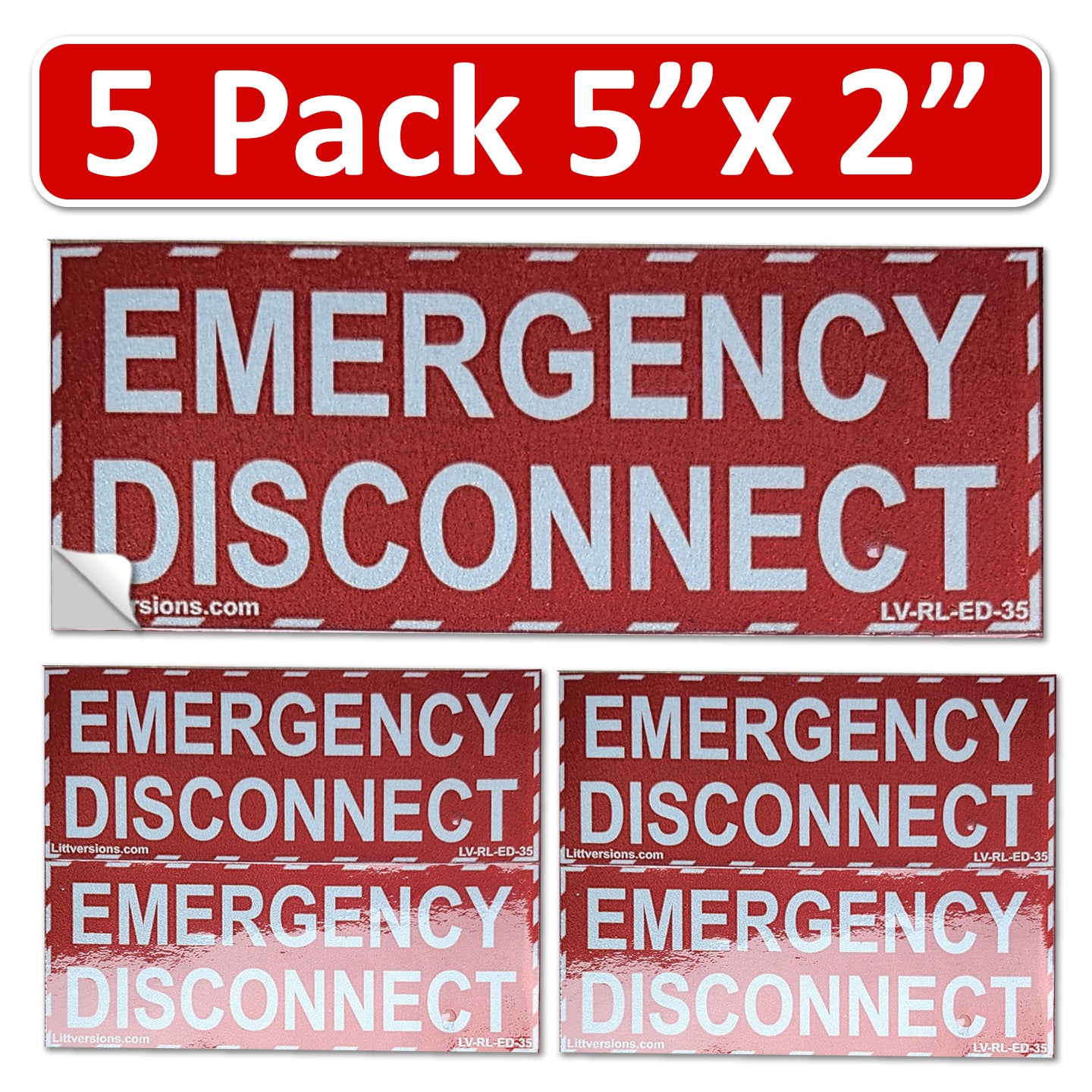 5 Pack 5"x 2" NEC Compliant Reflective RED Emergency Disconnect Outdoor Laminated Labels Decal Sticker Panel Heavy Duty Vinyl Waterproof Ultra Durable Electrical Panel