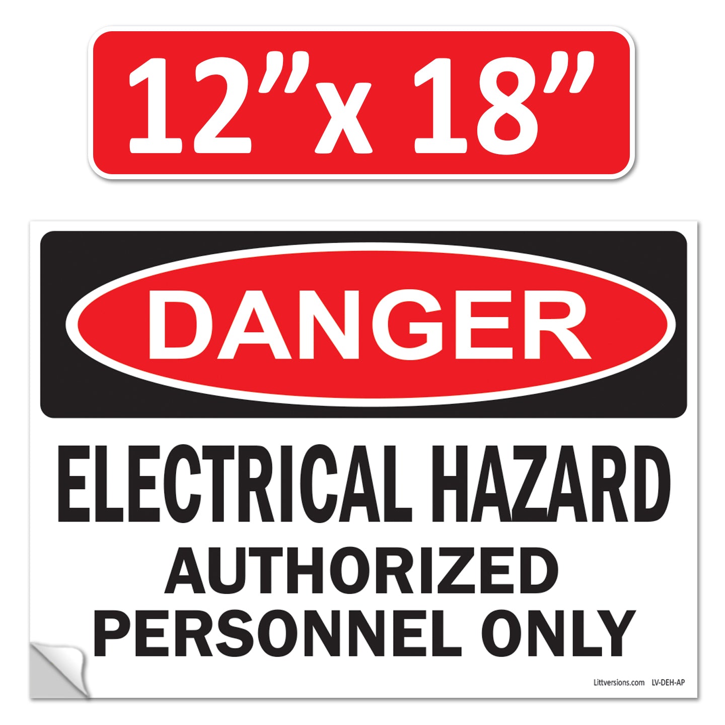 Danger Electrical Hazard, Authorized Personnel Only OSHA WARNING Safety Label Sign Decal 6 mil Laminated Engineer Grade UV Protected ANSI NFPA Weather Resistant Indoor Outdoor Use 40656