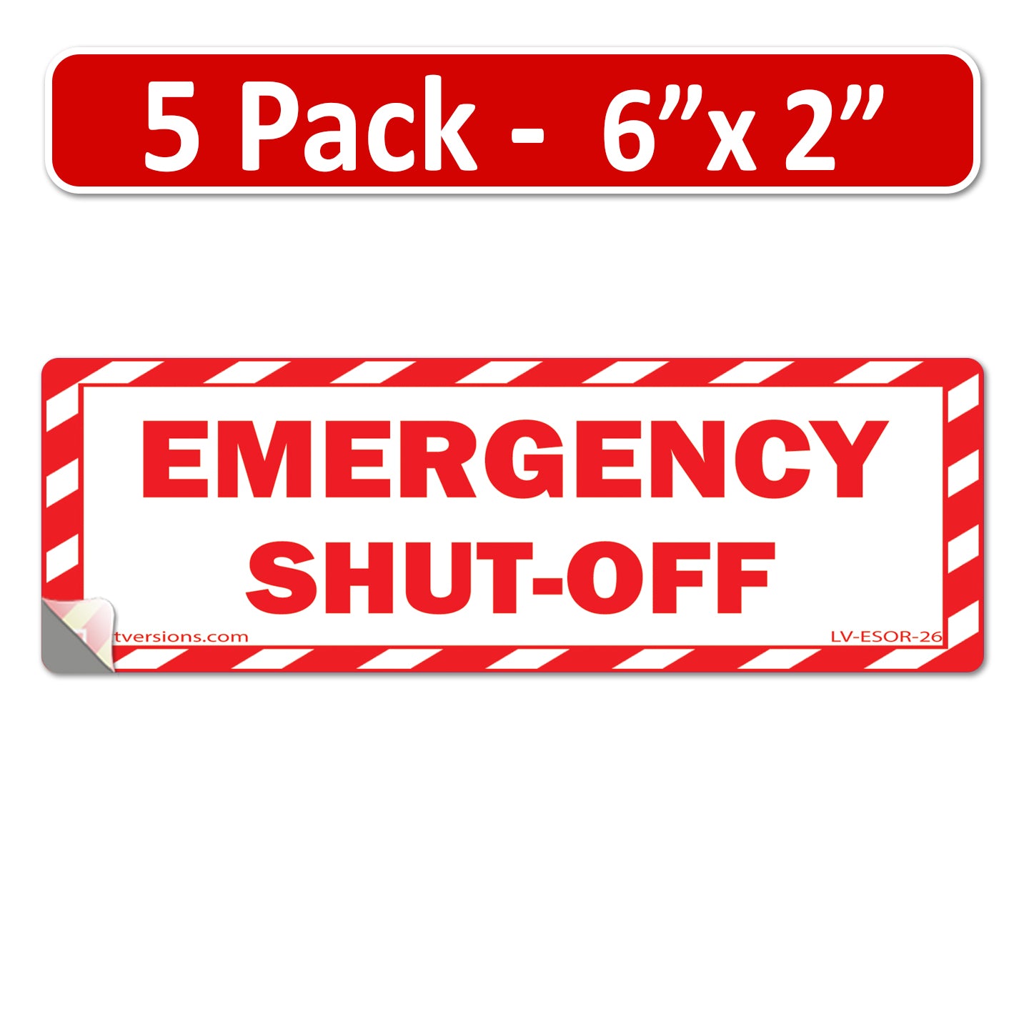 5 Pack White 6" x 2" EMERGENCY SHUT-OFF Fuel Switch Label Warning Safety Sign Sticker Electrical Panel Vinyl 6x2 2 x 6 inches