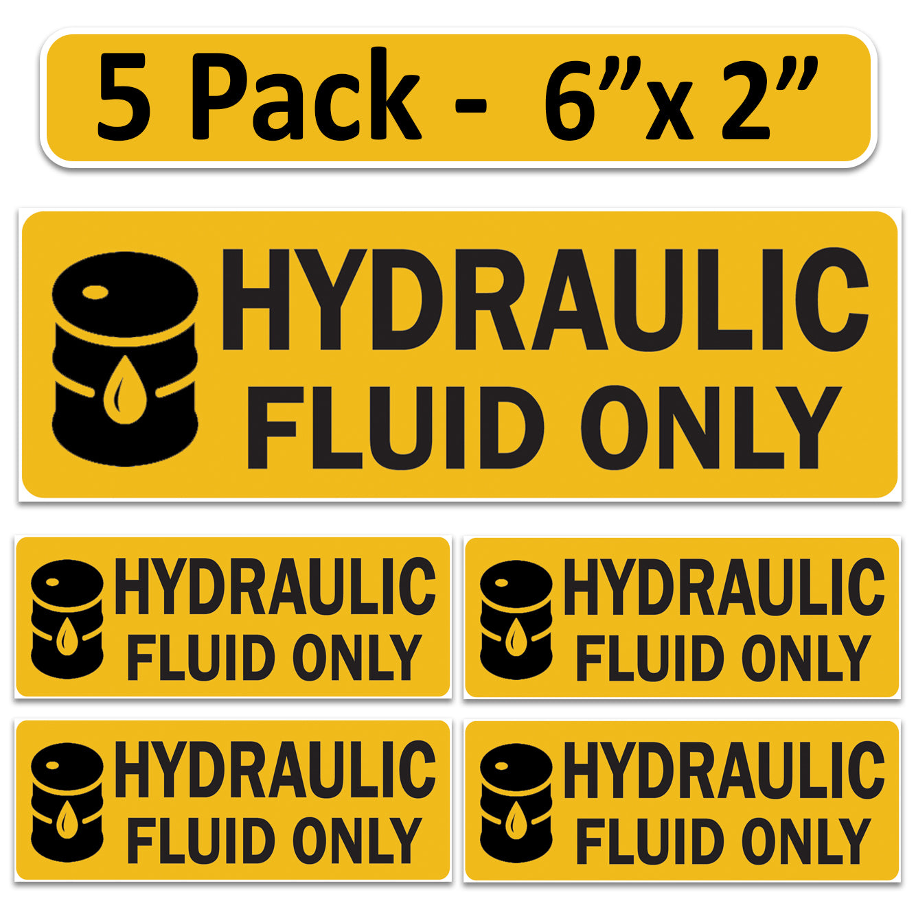 Littversions 5 Pack Hydraulic Fuel Only Stickers - 6"x2" Fuel Identification Labels - Weatherproof, UV-Resistant Vinyl for Fuel Tanks, Tractors, Excavators, Construction Equipment